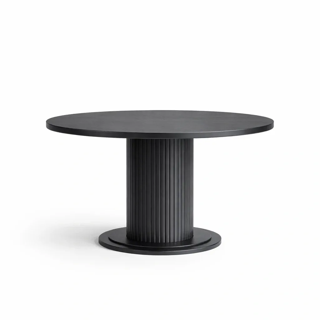 Tavolo da pranzo rotondo con base cilindrica in legno nero