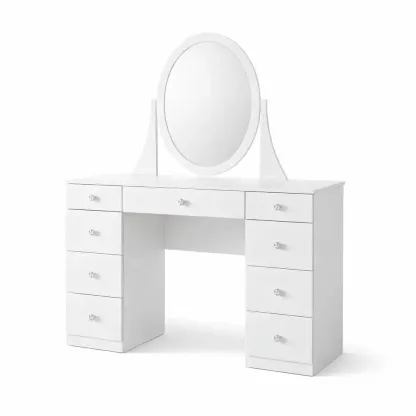 Toeletta con specchio ovale bianco e 8 cassetti in mdf